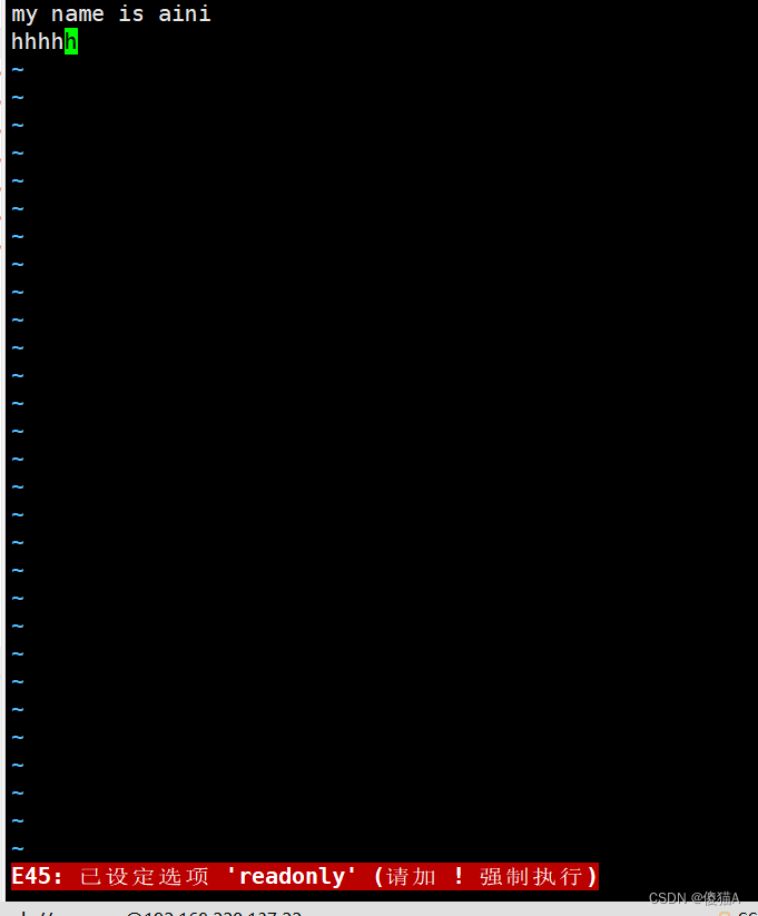 ## 但是wangwu想编辑文件,也是没有权限的。可以vi打开,但是编辑之后不能保存。