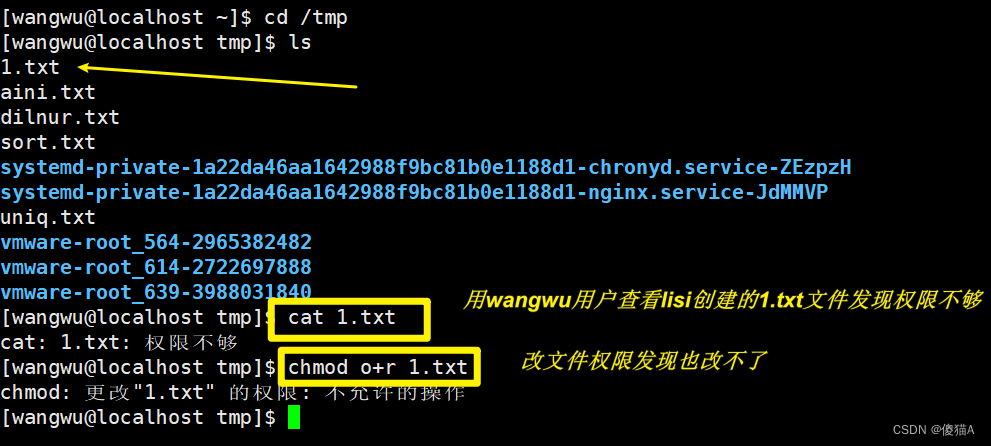 [wangwu@localhost tmp]$ chmod o+r 1.txt