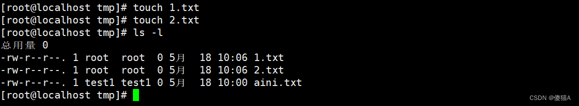 -rw-r--r--. 1 aini aini 0 5月 18 10:06 2.txt