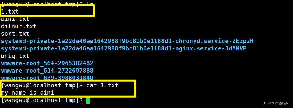 [wangwu@localhost tmp]$ cat 1.txt