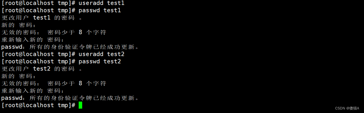 我们之前讲过创建一个用户也会创建对应的组,所以现在已经存在test1,test2组了