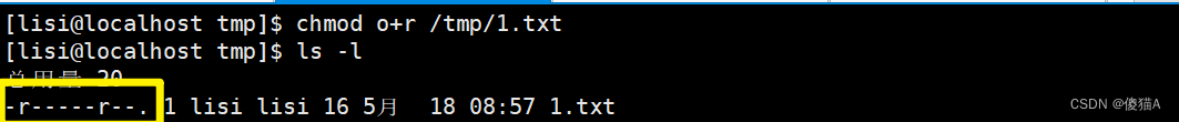 [lisi@localhost ~]$ chmod o+r /tmp/1.txt