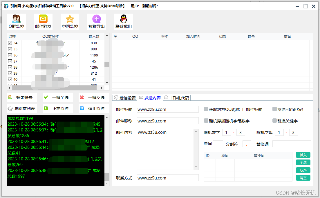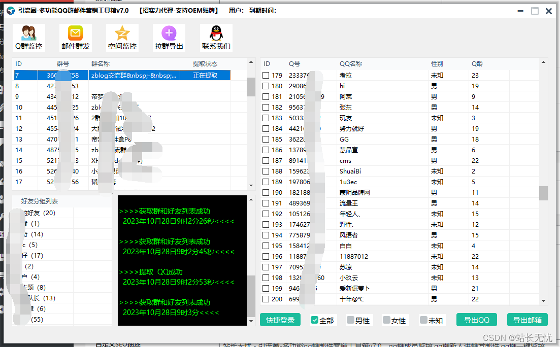 往下看还有邮件群发的功能 和 一键提取qq群成员 的功能