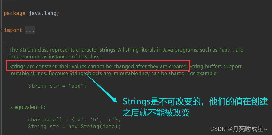 1. String类在设计时就是不可改变的,String类实现描述中已经说明了