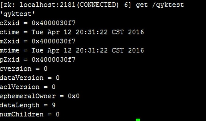 然后,我们可以执行create /qyktest‘qyktest'创建一个节点,如下: