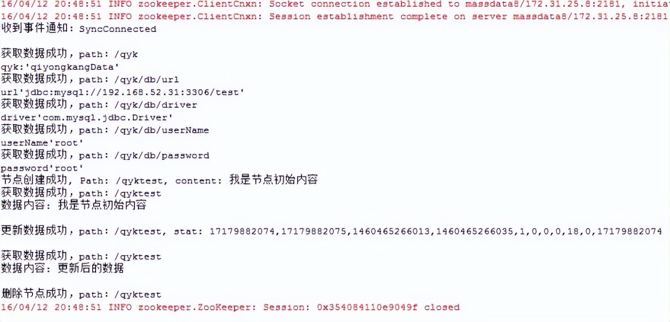 System.out.println("数据内容:"+sample.readData(ZK_PATH) + "\n");