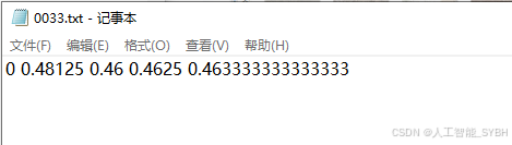 .txt文件,包含目标类别和边界框信息(归一化后的中心点坐标、宽度和高度)。 -