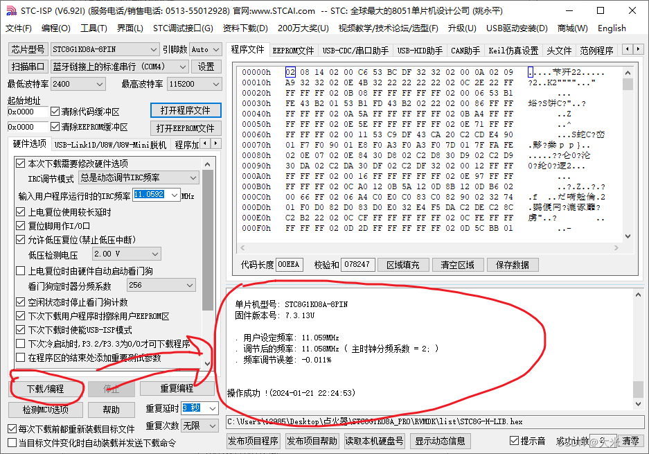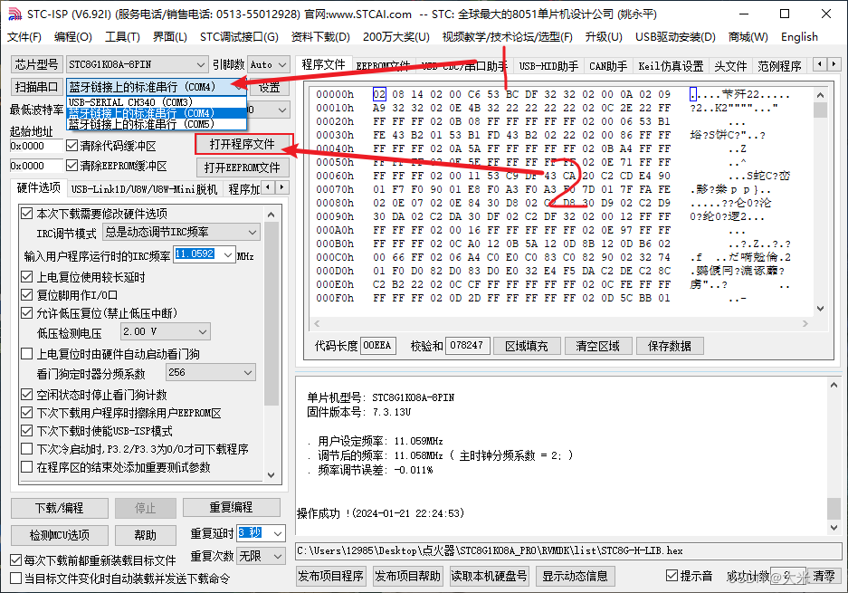 2.打开stc下载工具,配置下载口以及要下载的hex文件