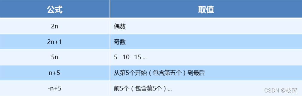 常见的公式如下(如果 n 是公式,则从 0 开始计算)