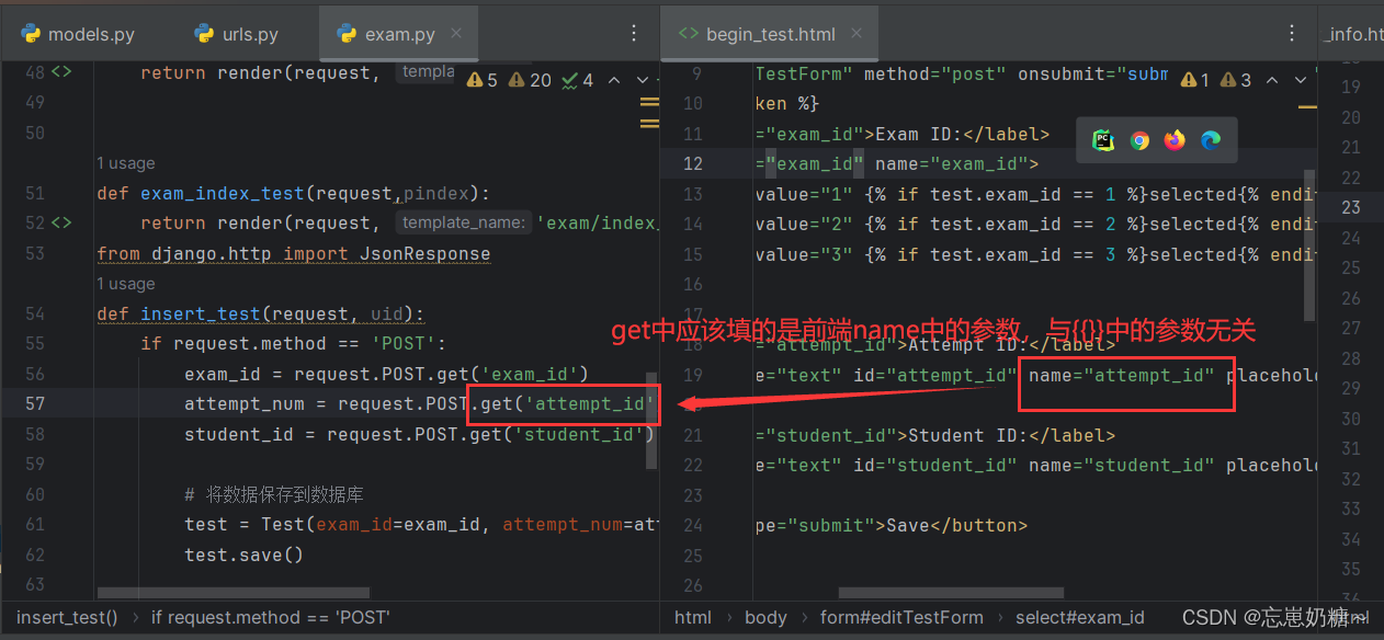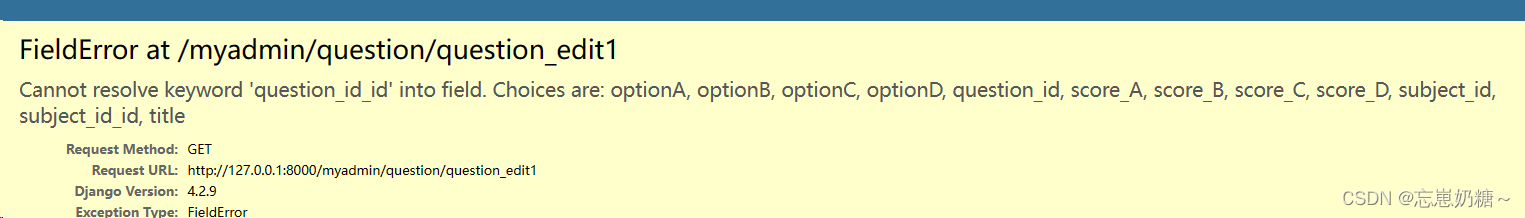 Django+Pyhton+Mysql遇到的问题7 question中存在subject_id作为外键吧。所以后来改了一下,用subject_id外键调用之后再去找question。明明数据库中有属性,但是就是调用不出来。后来查看了一下model,可能是因为。