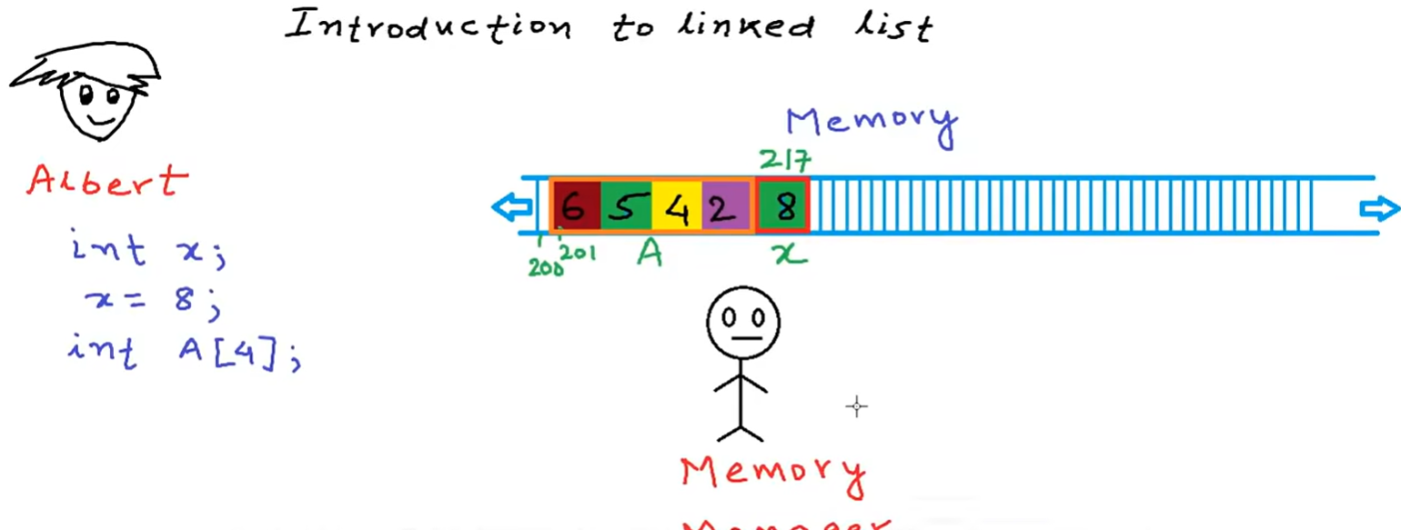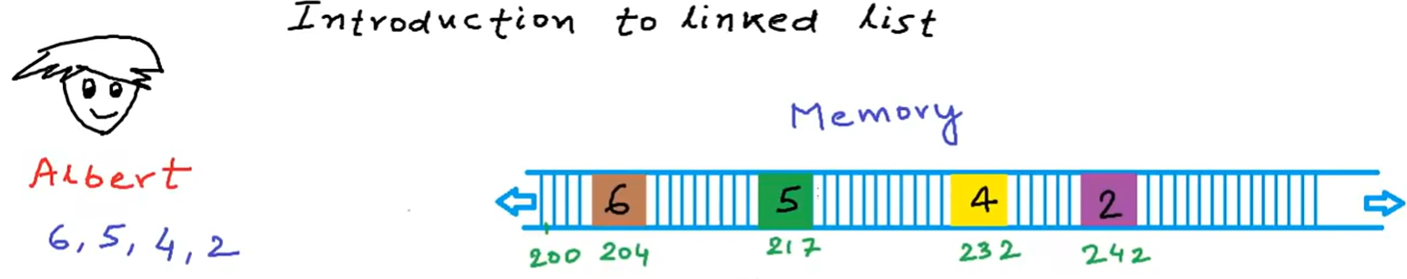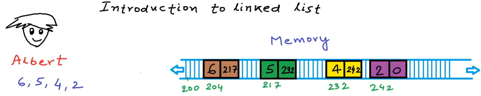 因为是非连续的,所以需要知道不同元素之间的联系,所以每个元素除了储存数据本身之外,还必须存储指向下一个元素的指针。这样依次相连,就像链表一样——