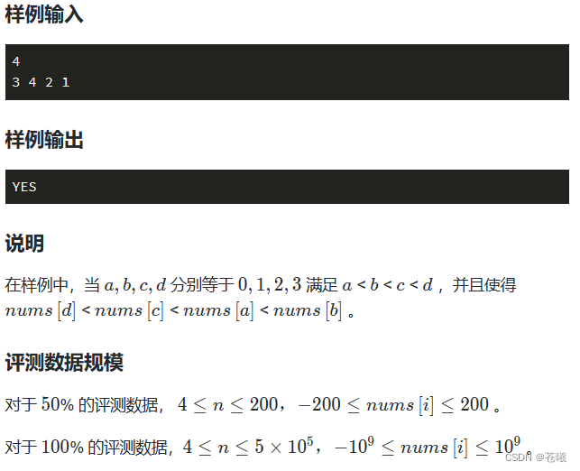 //判断 c 的右边是否 有比 nums[c] 小的数, 有则表示存在下标 d ,返回true