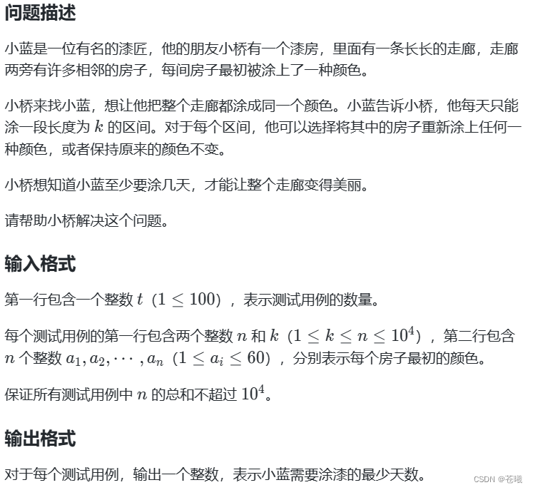4.小蓝的漆房 OJ:3272(有代码无注释)