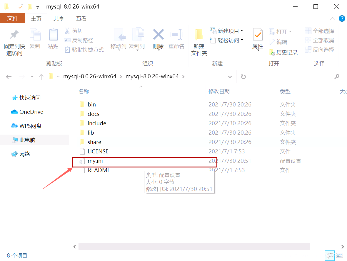 在解压目录下新建my.ini文件