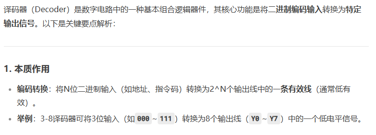 常见的译码器例如说:3-8译码器,n-2的n次方译码器