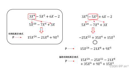 ①利用多项式的加法运算,即将多项式P2的每一项分别与P1多项式相乘,其结果也是一个多项式。应用多项式的加法运算,逐步将这些多项式累加,就可获得结果。