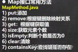 put(k,v); remove(k); get(k); size(); isEmpty(); clear(); containsKey(k);