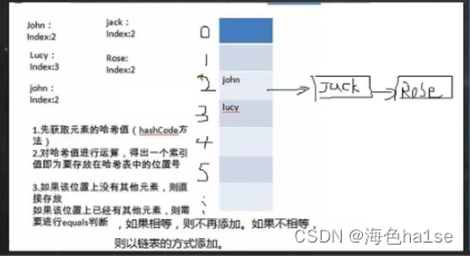 HashMap底层的存储机制是一个数组和链表的组合,添加一个元素时,会先得到对应的hash值,在转化成索引值,通过对比table表索引,查看该索引下是否存有元素,如果没有,则直接加入,有元素,就再调用equals方法比较待添加元素和已存在的元素是否相等,相等,则放弃添加,返回false,不相等,则在已存在的元素之后,按链表的形式添加进去(这时链表上的元素hash值相等)。