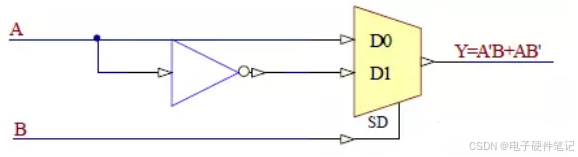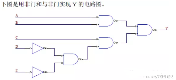 如果非门也用与非门实现的话,只需将与非门的两个输入端连接,置换到非门即可。