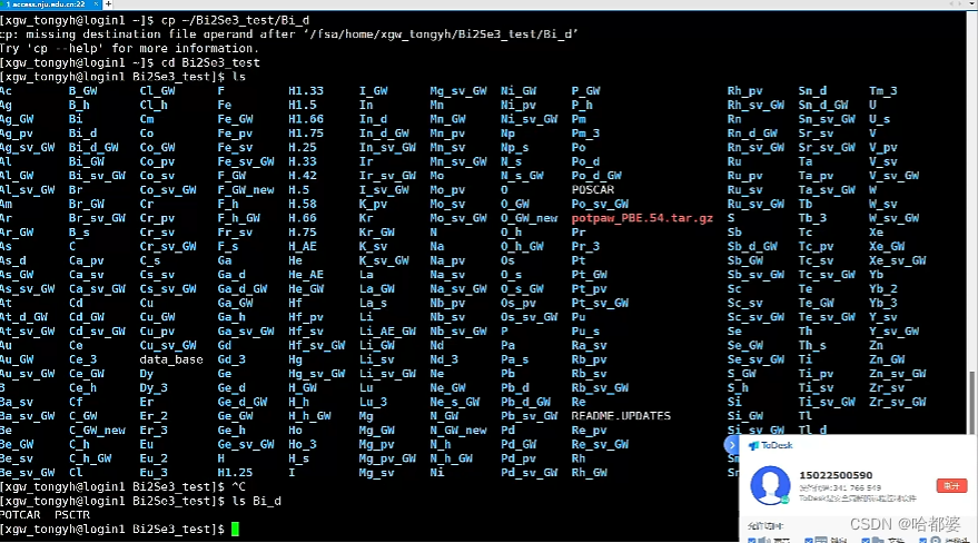 需要:那就把你需要的bi-d势能文件,考贝到你的Bi2Se3_test**工作文件夹**,(INCAR)这里然后合成一个POTCAR用cat命令bi-d目标文件夹,要做这个研究
