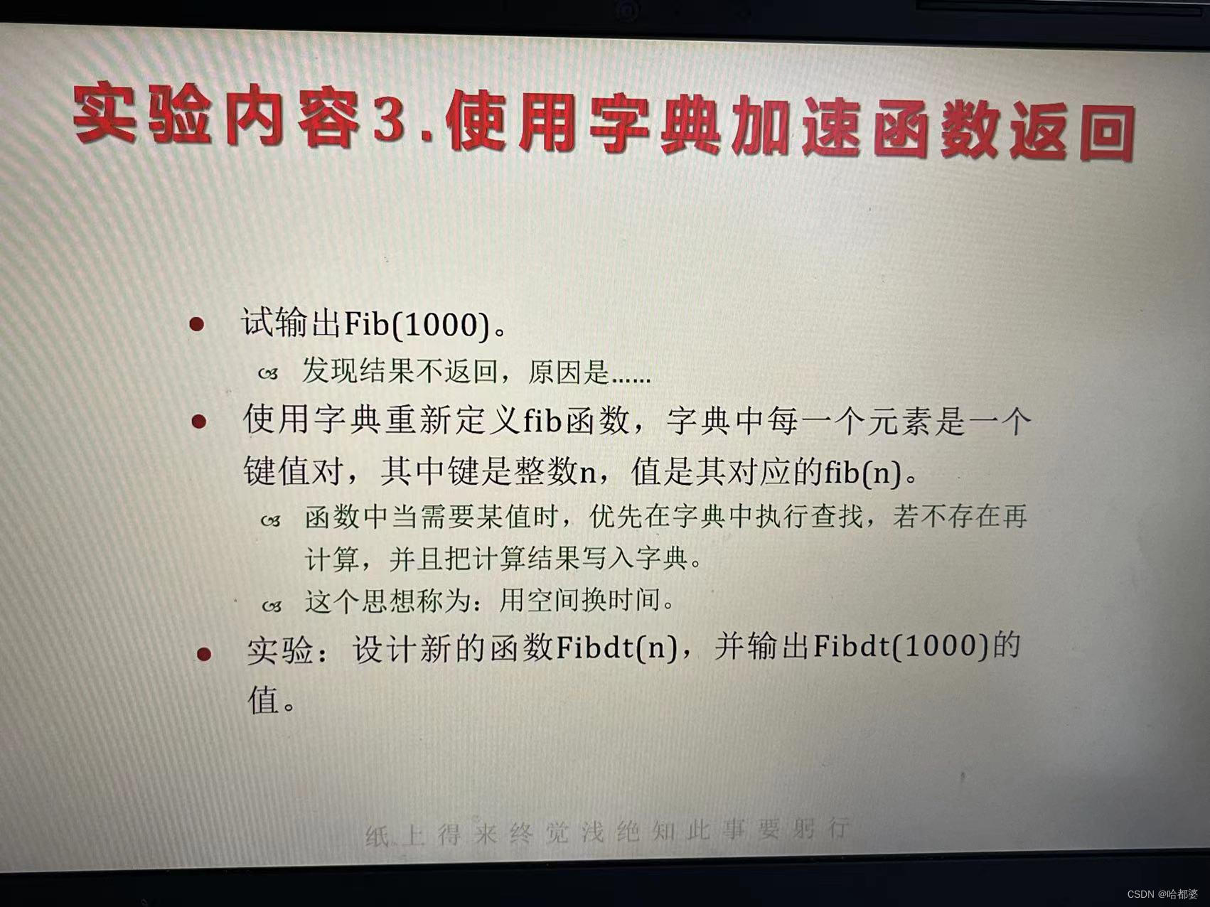 实验:设计新的函数Fibdt(n),并输出Fibdt(1000)的值。