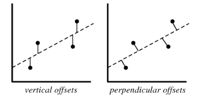 在最小二乘直线拟合中,我们希望找到一条直线,使得所有样本点到该直线的 垂直距离之和最小。这里的垂直距离指的就是每个样本点的真实值与预测值之间的差异,也就是 残差。因此,最小二乘直线拟合使用的是垂直偏移。