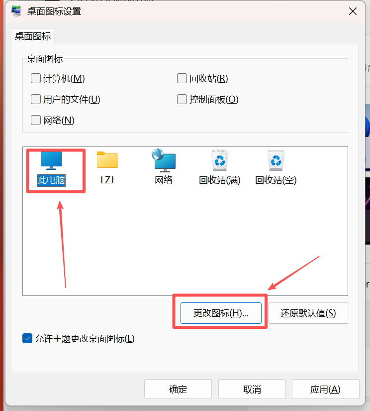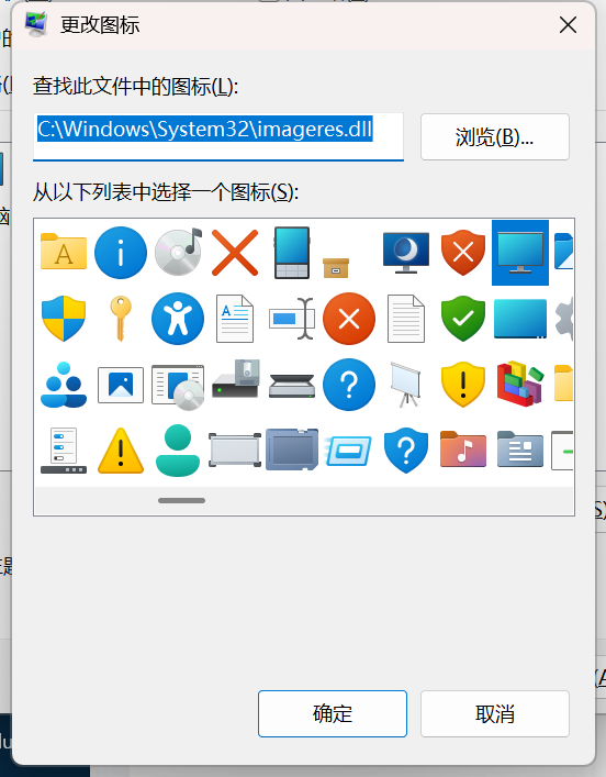 在这个页面还可以更改图标,可以改成自己喜欢的,选择一个,点击更改图标,然后进行选择就行了,如果你有自己的图标,还可以去你自己的文件夹中进行寻找。