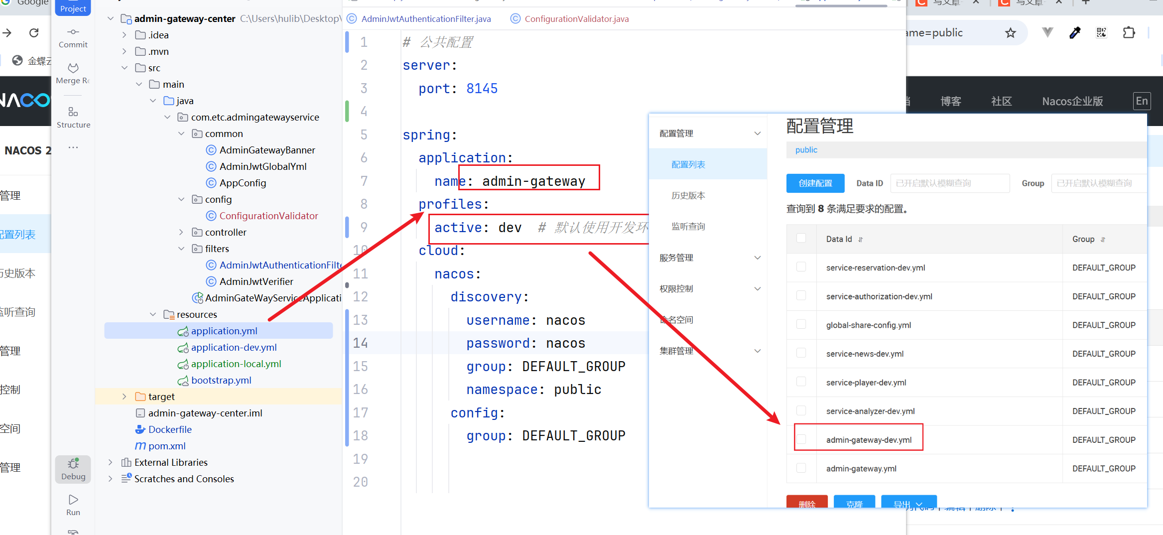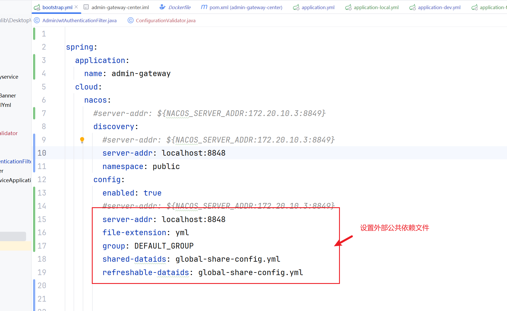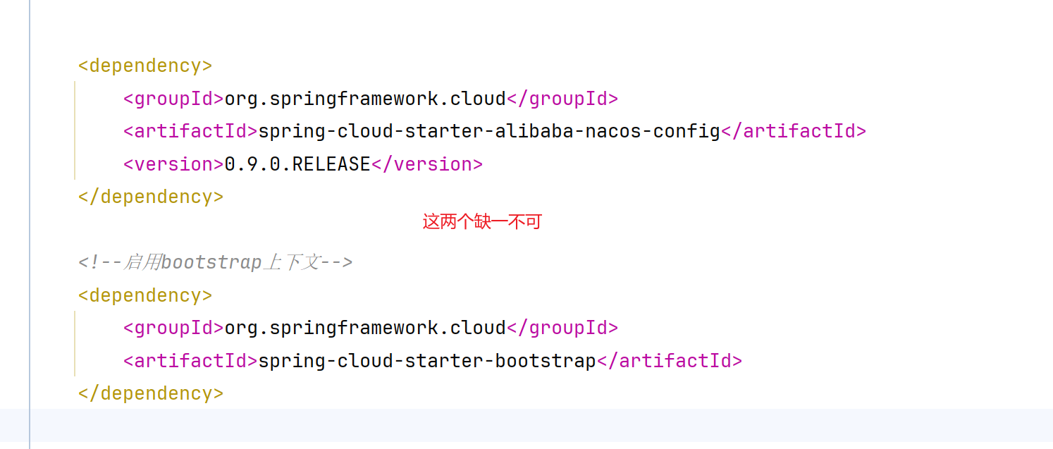 这两个依赖必须要引入,并且使用bootstrap的方式挂载外部yml时,程序启动前就会加载配置中心的信息,因此你可以基于 应用名+dev 的方式去自动的配置一个外部yml,说人话就是这个意思: