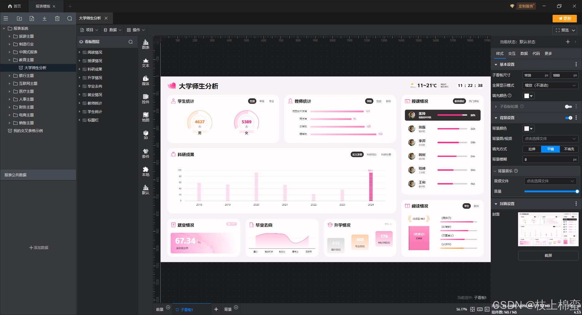 山海鲸报表在数据可视化方面表现出色,除了常规的二维可视化图表外,还引入了GIS功能并支持3D编辑。这使得用户能够将地理位置信息与数据报表相结合,通过3D可视化的方式展示数据的空间分布和变化趋势。