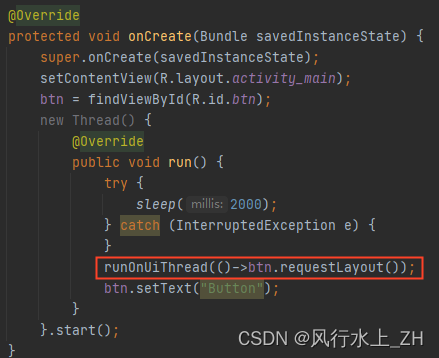 因此现在主线程先执行requestLayout,然后再在子线程更新UI可以避免抛出异常。