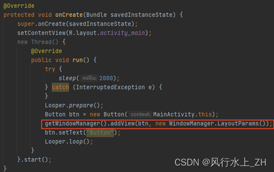 通过之前的分析,我们知道这个mThread是在创建ViewRootImpl时,记录的创建ViewRootImpl对象的线程。而ViewRootImpl是在WindowManagerImpl执行addView方法时创建的。