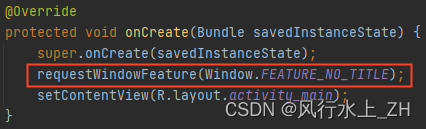 进入这个方法我们首先看到大量的requestFeature()方法,这些feature有我们经常会用到的如“FEATURE_NO_TITLE” 、“FLAG_FULLSCREEN”、“FEATURE_ACTION_BAR_OVERLAY”等等。它实际上是根据主题做一些window的配置。