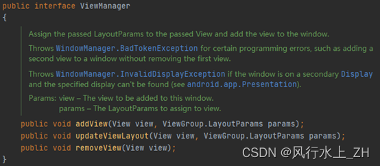 ViewManager是一个接口,WindowManager也是一个接口,它实现了ViewManager接口。