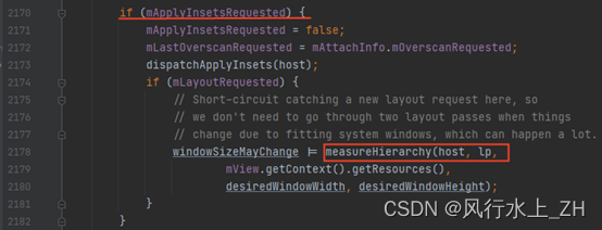 再向下看,mApplyInsetsdRequested == true,会进到下面的代码块,调用measureHierarchy()方法。这里实际上是将window的宽高给到DecorView。