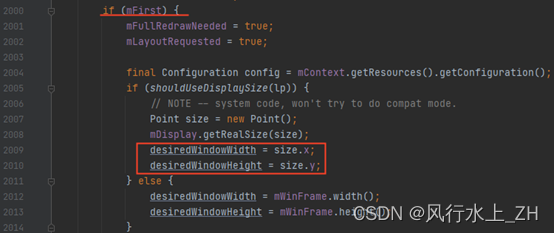 从performTraversals()方法开始看,此时mFirst == true,会进到如下代码块。第一次目标宽高即是取的window的宽高。