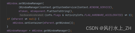 到这里我们知道mWindow和mWindowManager是在这里创建出来,他们分别就是PhoneWindow和WindowManager。先记录一下,后面会用到。