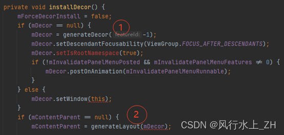 进入instarllDecor这个方法主要做两件事:创建Décor和创建ContentParent。我们先跟进去看下这两个过程,弄清楚他们分别是什么。