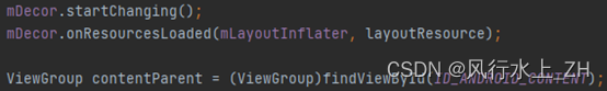 这里插一个题外话:我们注意到现在是进行setContentView的过程。这也就是为什么我们在设置窗口属性时,要在setContentView方法执行之前。因为,这些窗口属性是在setContentView的过程中被用到。在setContentView方法之后设置是不生效的。