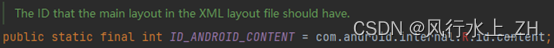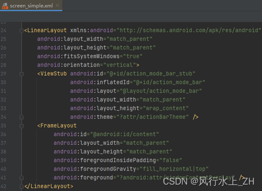 一个很简单的线性布局文件,包含ViewStub和FrameLayout两个部分。注意FrameLayout的id是 “@android:id/content”,这个很重要,后面会用到。