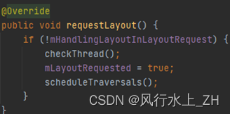 这里checkThread()就是我们刚开始说,子线程更新UI抛出异常的地方。它就是在ViewRootImpl的requestLayout()被调用,这也是唯一被调用的地方。