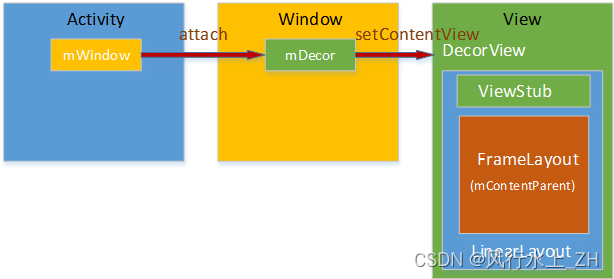 到此我们可以得到Activity、Window、View他们之间的关系: