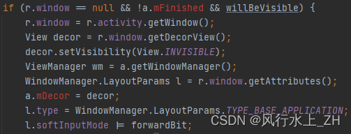 向下看代码,进入到如下代码块,调用一次relayoutWindow方法,将初始测量的值以及参数发给WMS,确定窗口的属性值。