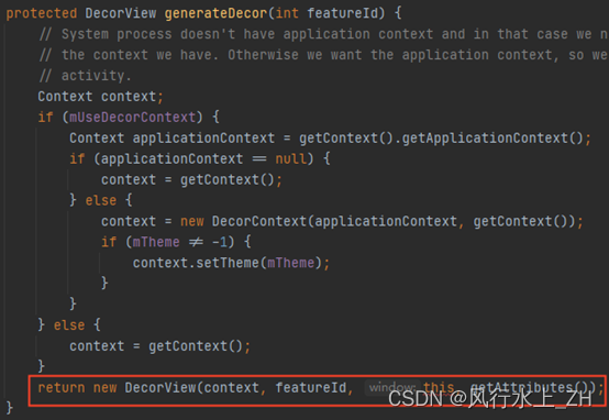 这里实际上就是直接new DecorView出来。