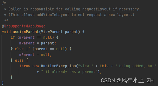 这个方法就是设置ViewRootImpl为DecorView的parent。这个方法最终调用到父类View中的方法: