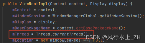 在ViewRootImpl的构造函数中,会记录当前线程到mThread变量。前面我们说子线程更新UI报错,检查线程就是检查的这个。