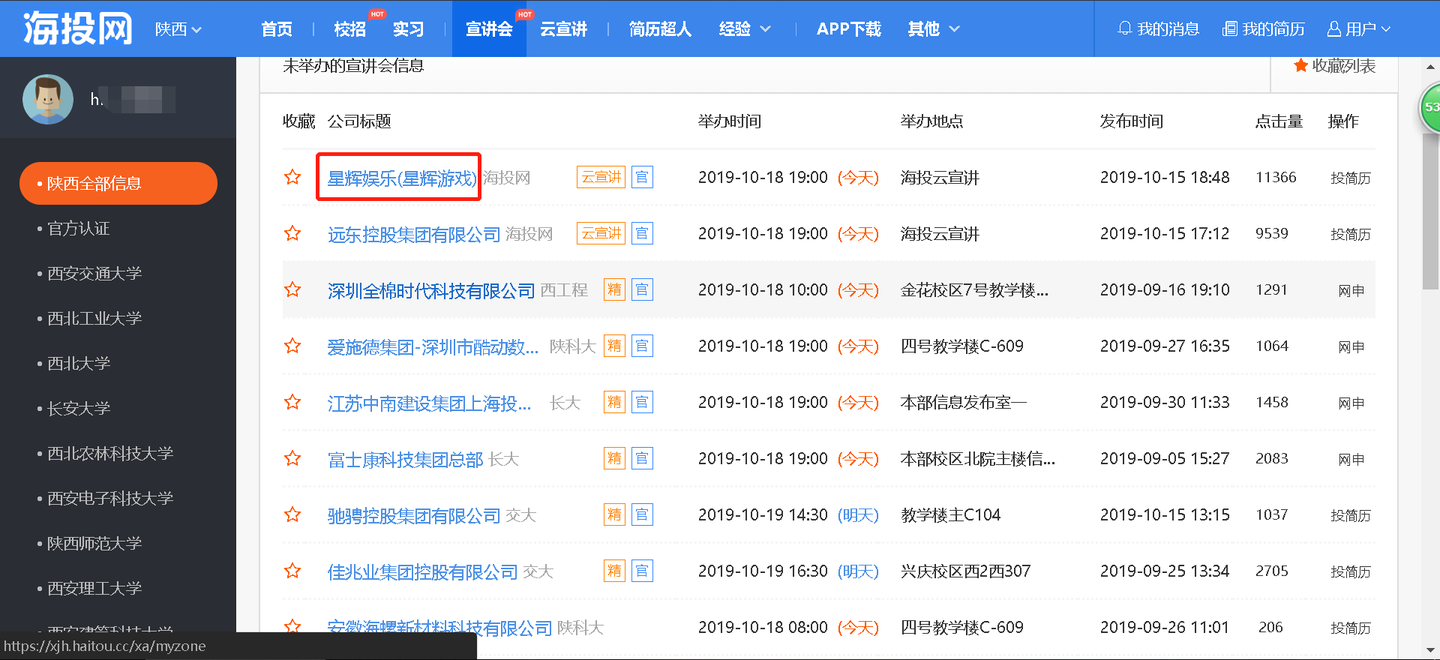 继续以上篇文章的海投网为例,爬取陕西所有高校宣讲会公司信息来进行性能对比。