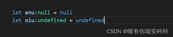 在TypeScript中,它们各自的类型也是undefined和null,也就意味着它们既是实际的值,也是自己的类型