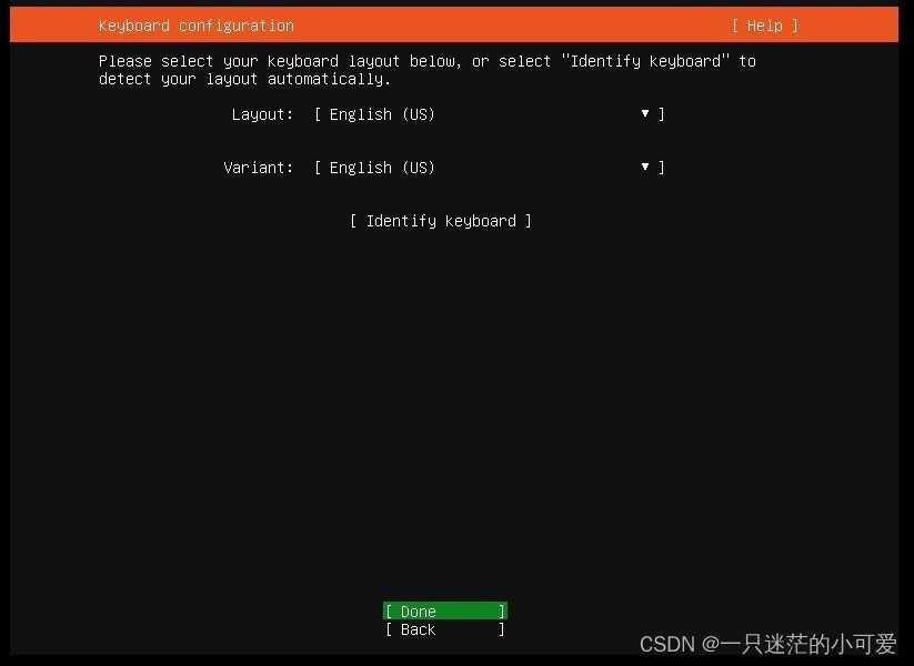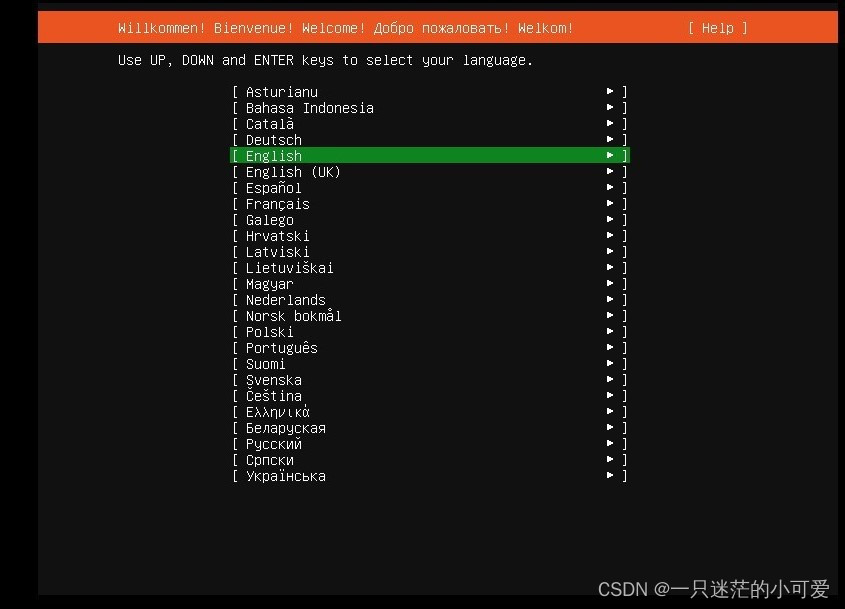 ubuntu的server(服务器版)没有中文模式选择,选择英文模式(English),如下: