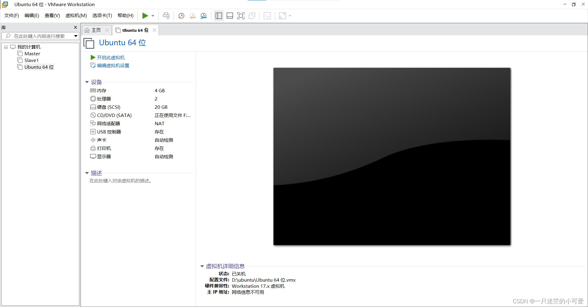 个人使用的虚拟机安装软件为VMware® Workstation 17 Pro版本17.0.0 build-20800274