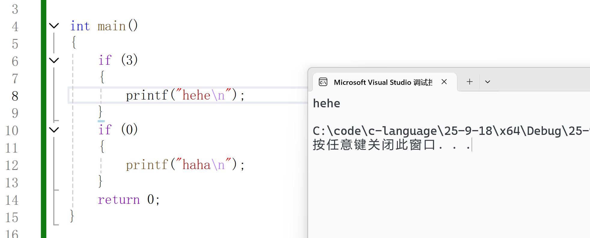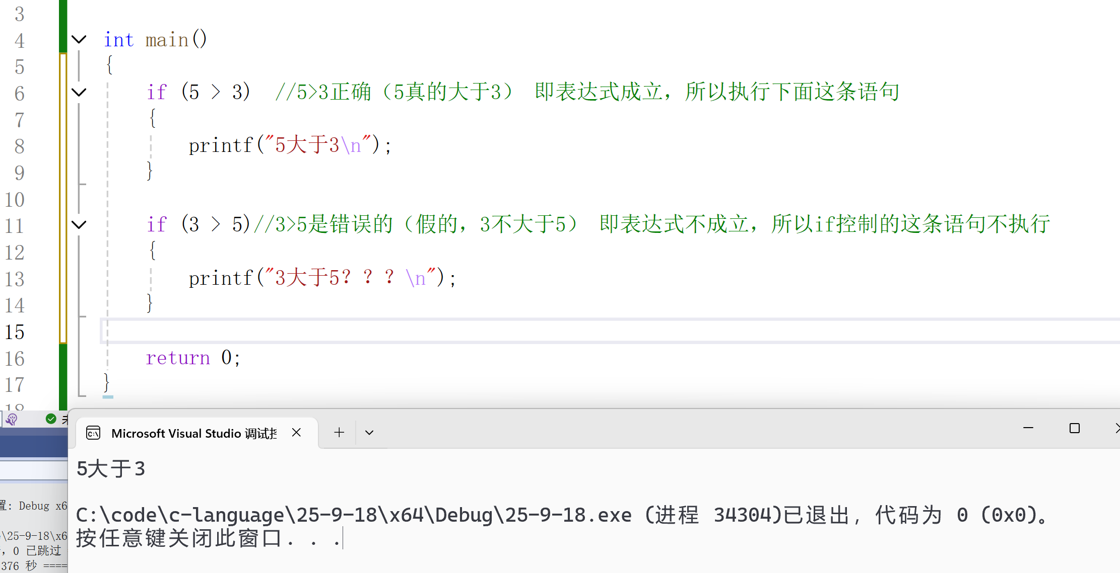 需要注意的是:在C语言表达式中 0 表示假;非0 表示真,也就是说除了0以外的任何数值都表示真。
